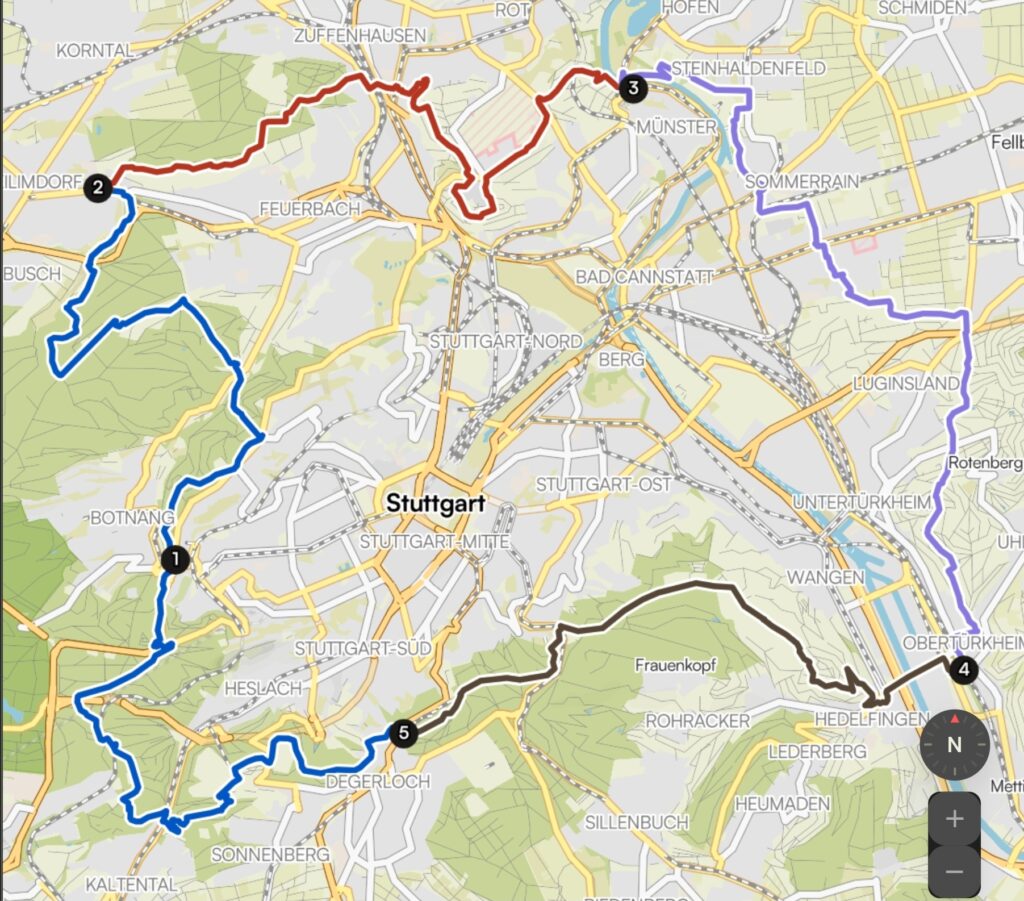 Etappe 5: Start: Straßenbahnhaltestelle „Weinsteige“ Ende: Bushaltestelle „Botnanger Sattel“